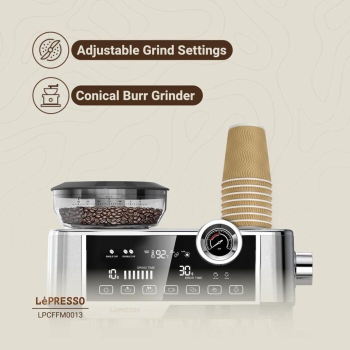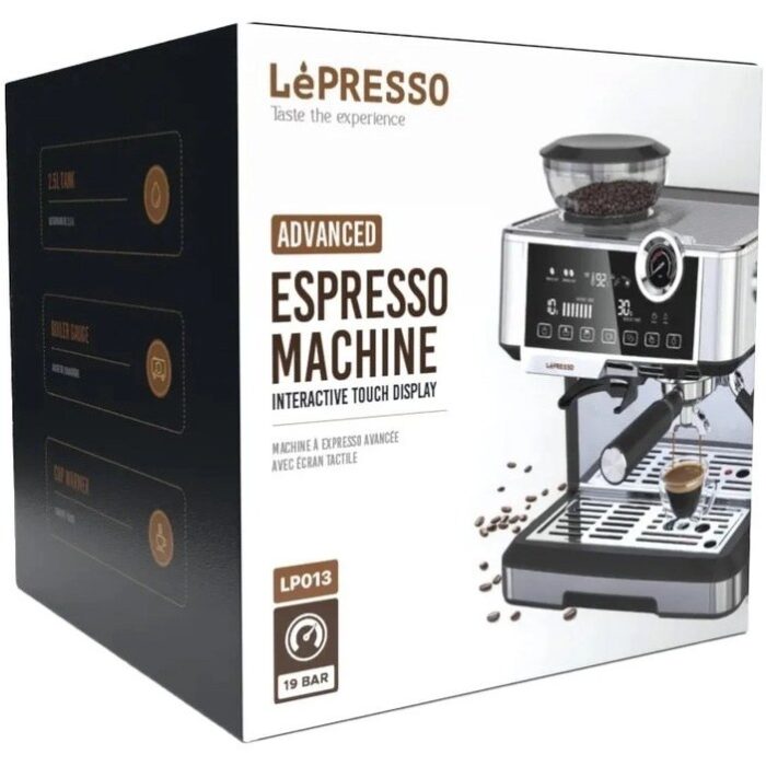 با دستگاه اسپرسوساز پیشرفته LePresso، یک اسپرسوساز پیشرفته با صفحه نمایش لمسی تعاملی به رنگ نقره ای، از قهوه خود به سبک لذت ببرید. دستگاه اسپرسوساز پیشرفته LePresso دارای ولتاژ 220-240 ولت و دارای فرکانس 50-60 هرتز با توان عملیاتی 1350 وات برای کارایی کلی و سازگاری در عملکرد آن است. مجهز به پمپ فشار ULKA درجه یک 19 بار، بهترین استخراج و اسپرسوی کامل و غنی را تضمین می کند. طراحی کاربرپسند است، با یک دوشاخه برق 3 پین بریتانیا و یک رابط صفحه نمایش لمسی بصری که ساده ترین راه را برای تنظیم تنظیمات فراهم می کند. همچنین به شما این امکان را می دهد که اسپرسوی خود را همانطور که می خواهید شخصی سازی کنید. تنظیمات آسیاب، همراه با آسیاب مخروطی، از آسیاب کامل هر دانه برای حفظ عطر و طعم کامل در قهوه شما مراقبت می کند. مخزن آب 2.5 لیتری به اندازه کافی جادار است که به شما امکان می دهد دفعات پر کردن مجدد آن را کاهش دهید. سطح فشار در دیگ بخار به راحتی در یک نگاه با گیج دیگ کنترل می شود. فنجان گرم کن داخلی فنجان ها را تا دمای مطلوب گرم می کند تا اسپرسوی شما گرم و خوش طعم بماند. دستگاه اسپرسوساز پیشرفته LePresso به شما این امکان را می دهد که اسپرسویی با کیفیت باریستا را در راحتی در خانه خود ایجاد کنید. این اسپرسو ساز با ویژگی های غنی، تجربه نهایی دم کردن را به درب منزل شما می آورد و به شما امکان می دهد از یک فنجان اسپرسو عالی در راحتی چهار دیواری خود لذت ببرید.